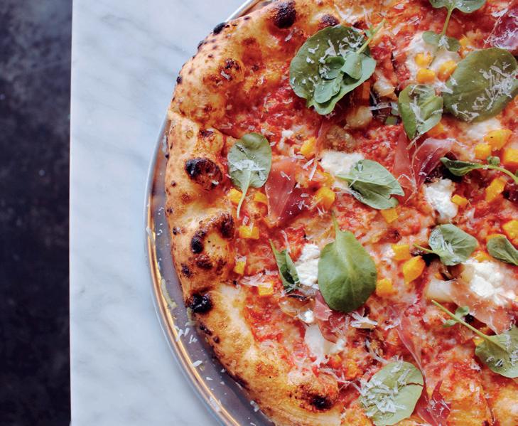 There’s just something about the crackling crust of pizza cooked over a wood fire. The rustic-feeling open kitchen dishes out crispy pizzas topped with ingredients like kale and spicy sausage that are as tasty as the winebraised duck ragu, and the wine list features 150 bottles sourced from nearby San Luis Obispo and Santa Barbara counties.