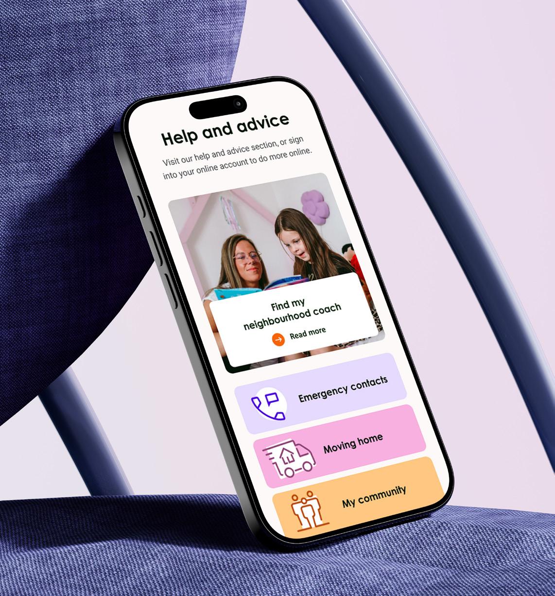 Spindogs ran an in-depth discovery process that placed customer voices at the heart of the project. We mapped detailed user journeys for key needs such as reporting repairs, paying rent, finding community support, and contacting neighbourhood coaches.