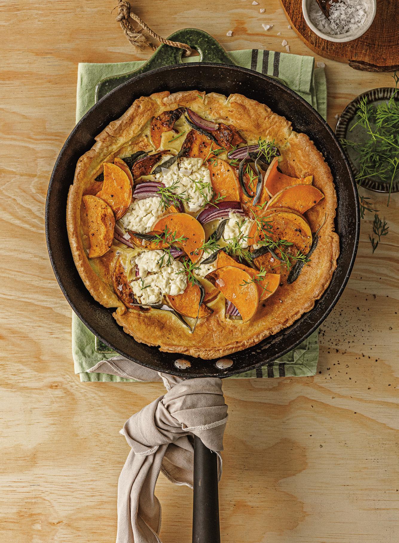 Pumpkin and red onion cottage cheese Dutch baby frittata