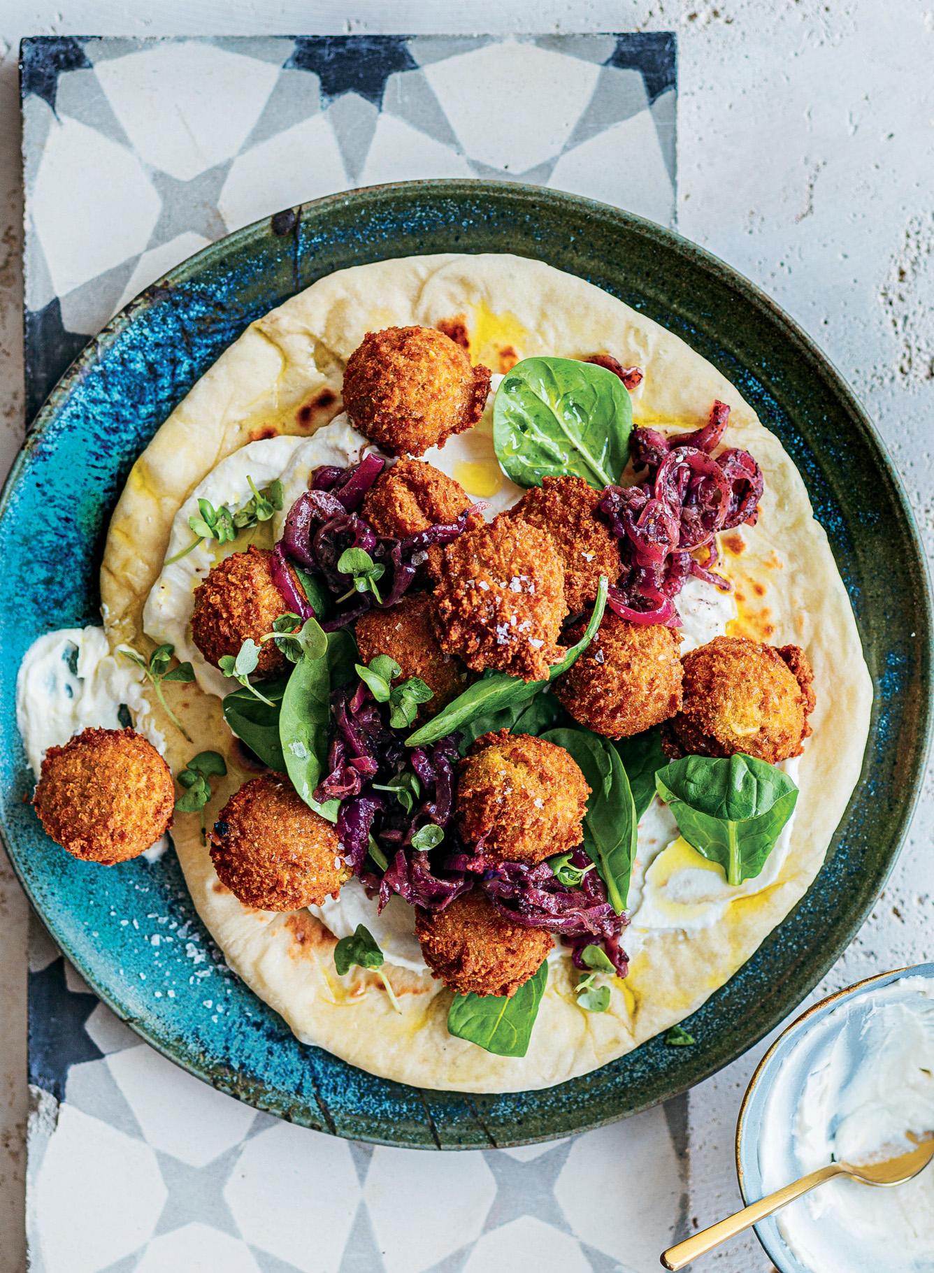 Freekeh falafel with sumac onions and shrak bread 65