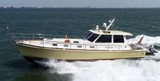 Powered by a pair of diesel outboards, this Downeast style yacht is the first of its kind.