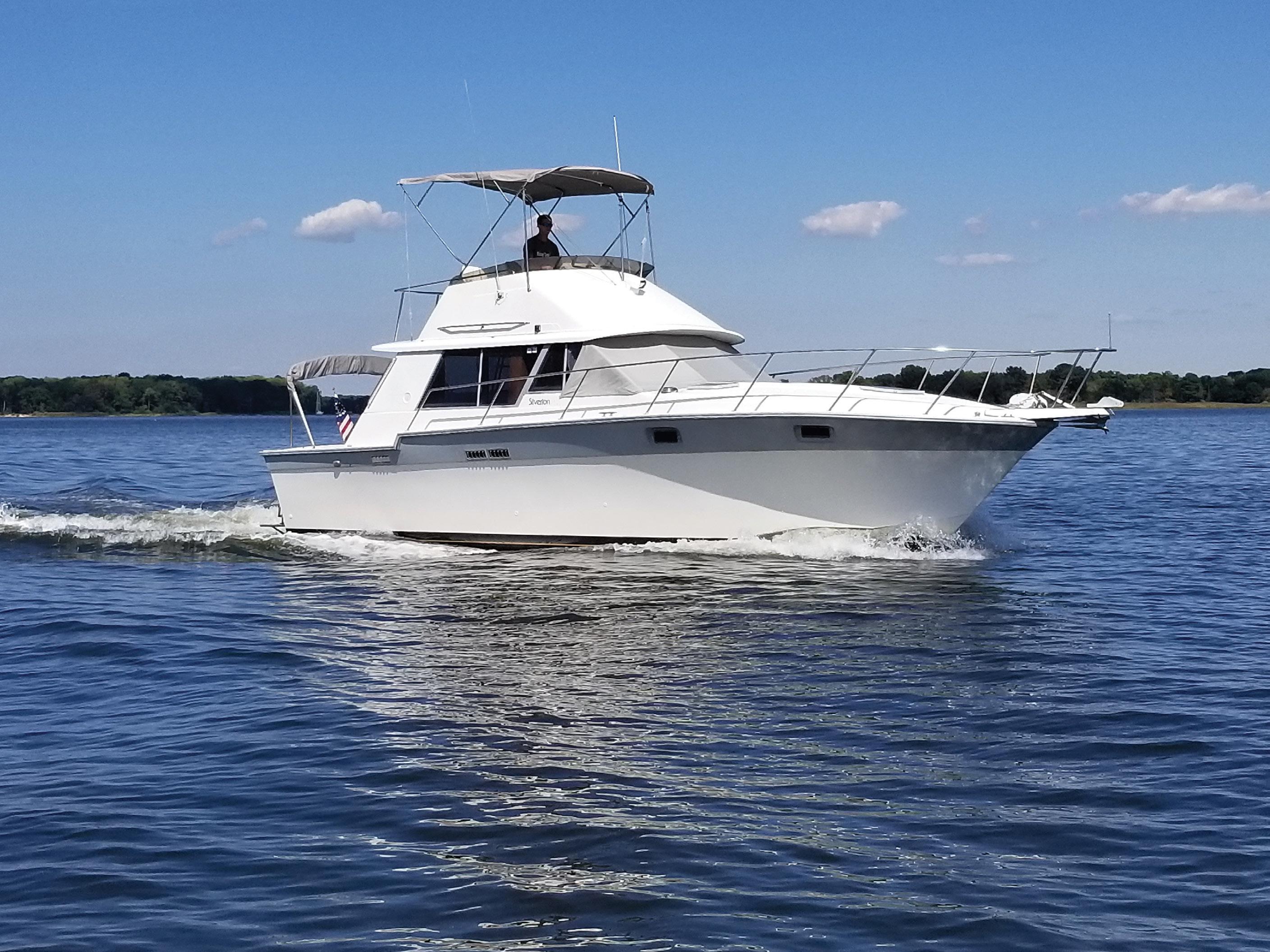 Improvement! A Very well-kept boat. Both state rooms have heads and showers. Full Kitchen, A/C, and custom shade panels. T-Cummins engines w/ 450Hp each. Westerbeke 12 KW generator. New marine decking on swim platform. All this for a price of $175,000 Call Joe Smith at 410.708.0579 for an appointment. Sassafras Harbor Marina Yachts Sales, 410.275.8000 shmys@sassafrasharbormarina.com www.sassafrasharbormarina.com