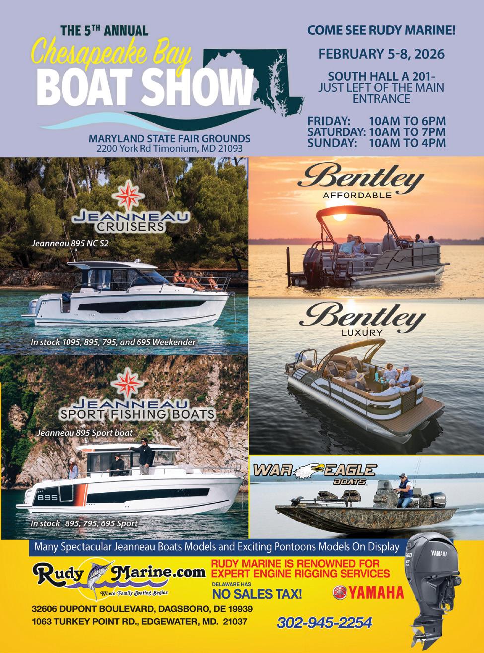 36’ Judge Chesapeake 36 2009 NEW LISTING! Experience the perfect fusion of luxury, performance, and rugged reliability. Whether you’re chasing trophy fish or cruising the coast in style, this vessel delivers. 480Hp Cummins QSB 5.9 common-rail diesel inboard… $249,500 S&J Yachts, 410.639.2777, www.sjyachts.com