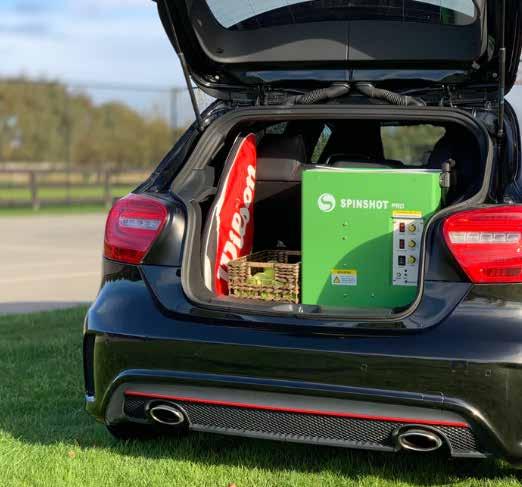 Spinshot Pro o ers multi-function speed control, horizontal and vertical oscillation, topspin and backspin. Simply adjust the controls on the machine's easy-to-use control panel to tailor ball delivery to your training needs.