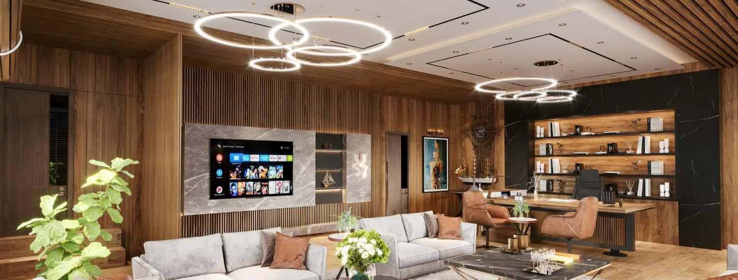 opposite side of the gallery, 98” and 65” displays set the mood for Banjara celebrations, complemented by physical set elements that complete the immersive environment.