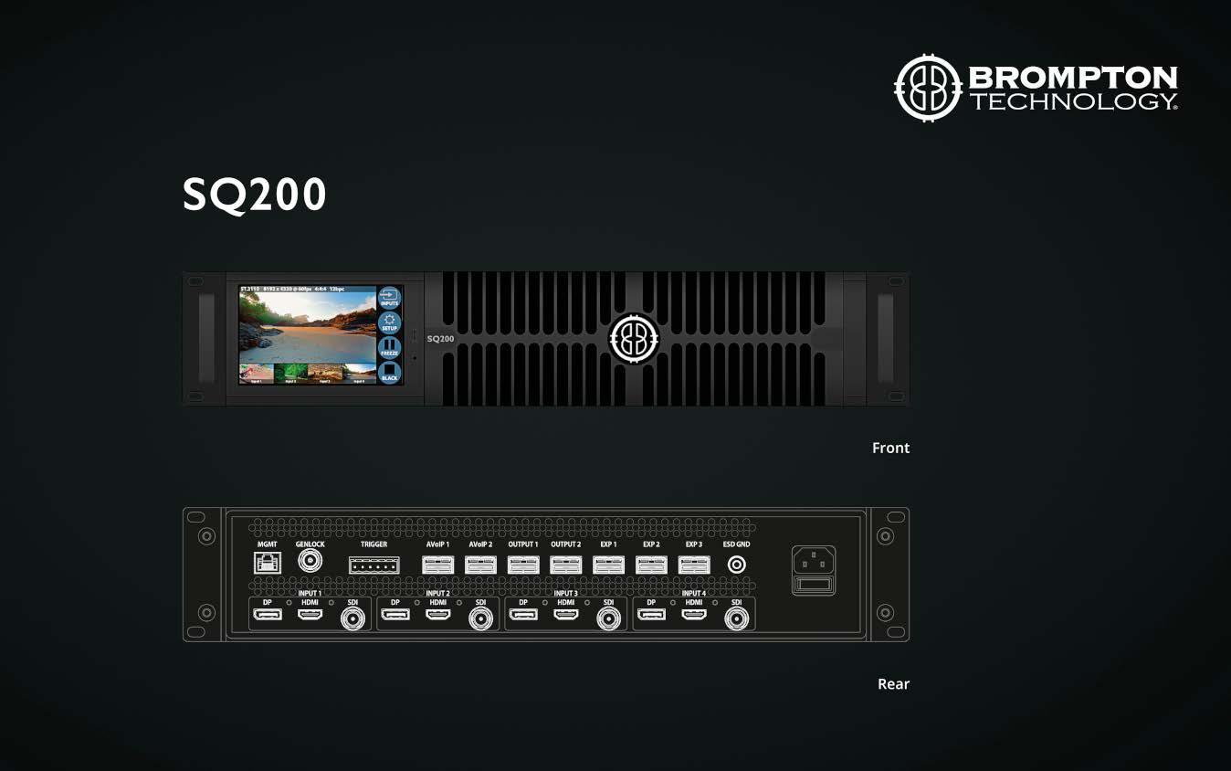According to Chris Deighton, CTO and cofounder of Brompton Technology, the company always seeks to do more than just check boxes. Brompton’s aim is to deliver products that address the needs of the real world and that are future-proof to ensure great returnon-investment for their customers. With that in mind, the SQ200 offers 100Gb Ethernet connectivity to support 8K video-over-IP at 60fps and 12bpc over a single cable. There is also a second 100Gb Ethernet input for a fully redundant video-over-IP network, meeting the requirements of Brompton’s most demanding customers.