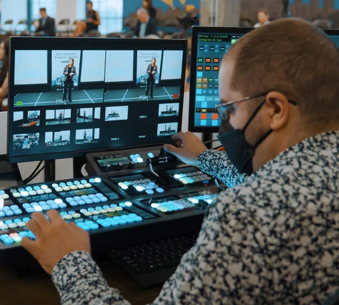 Carrying this vision, IDEAL Systems built a studio and pipeline with portable rack units equipped with professional HD/UltraHD camcorders and NDI PTZ cameras for NDI lowlatency streaming and remote control. The units include mixers with Dante audio networking, wireless microphone systems to capture audio in dynamic environments without interference, and NDI-enabled network switches for fast, reliable data transfer to multiple video sources. SRT (secure reliable transport) 4G/5G wireless routers for secure data transmission are also integrated.
