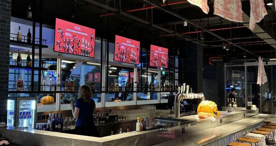 amplifiers to power the immersive audio experience in the venue. The CS352 is a 2-channel amplifier with 350 watts per channel, while the CS704 is a 4-channel amplifier that outputs 700 watts per channel. All Connect Series amplifiers are professional-grade IoT-enabled smart amplifiers for any sized installation, support Hi-Z (70V or 100V) and Lo-Z selectable by channel, and feature Smart Power Bridge technology. The CS352s power the loudspeakers in the sports bar and the dividable social room, while the CS704s power the remaining loudspeakers.