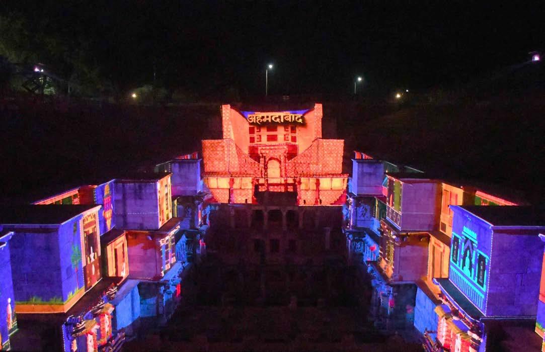 Supported by Design Factory India as consultant, Aura Bright Light supplying and installing the projectors, and Knownsense Studios leading content creation, the installation maps 22,000 pixels across the stepwell, the canvas among the largest ever used for an Indian heritage site. Multidisciplinary teams of artists, animators, and heritage researchers developed visuals inspired by Patan Patola textiles, ancient water architecture, and spiritual symbolism, blending ultra-high-resolution 3D animation with evocative soundscapes that merge traditional instruments with cinematic orchestration.