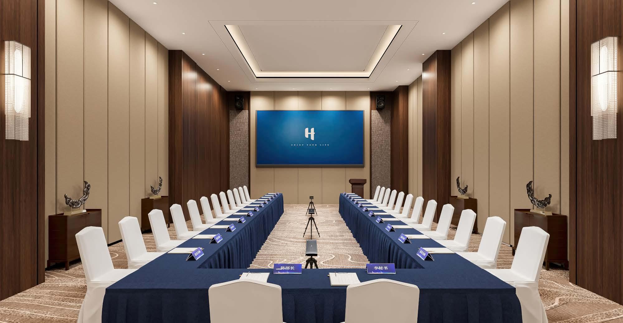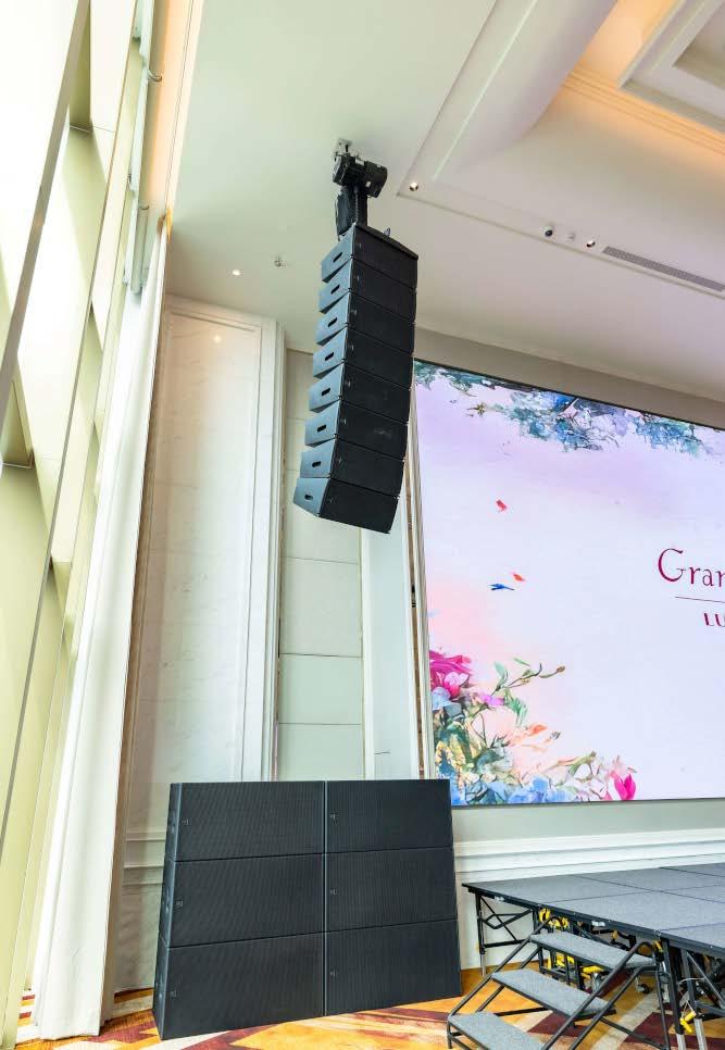 audio extends to public areas via more than 95 JBL Control Series speakers and 16 JBL GSF6 ground-stake landscape loudspeakers, providing seamless coverage in lobbies, corridors, and fitness areas. For pop-up presentations or smaller events, the hotel can deploy two JBL PRX ONE powered column PAs for instant reinforcement.