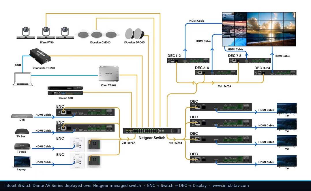 INFOBIT and NETGEAR validate a complete AV-over-IP stack built around the iSwitch Dante AV Series