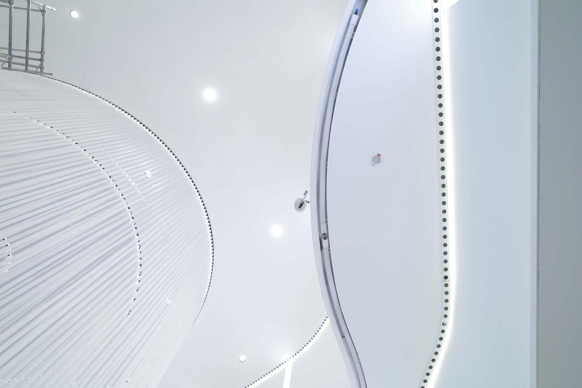 In corporate environments, this matters commercially as well as aesthetically. When audio is visually intrusive, it dates the space and undermines the brand signal the client is trying to send. Invisible audio protects the design investment. The ByteDance showroom in Beijing is a good example, a 2,000m² space with metal finishes, display walls and hard surfaces everywhere. The brief demanded concealed audio across multiple zones with no