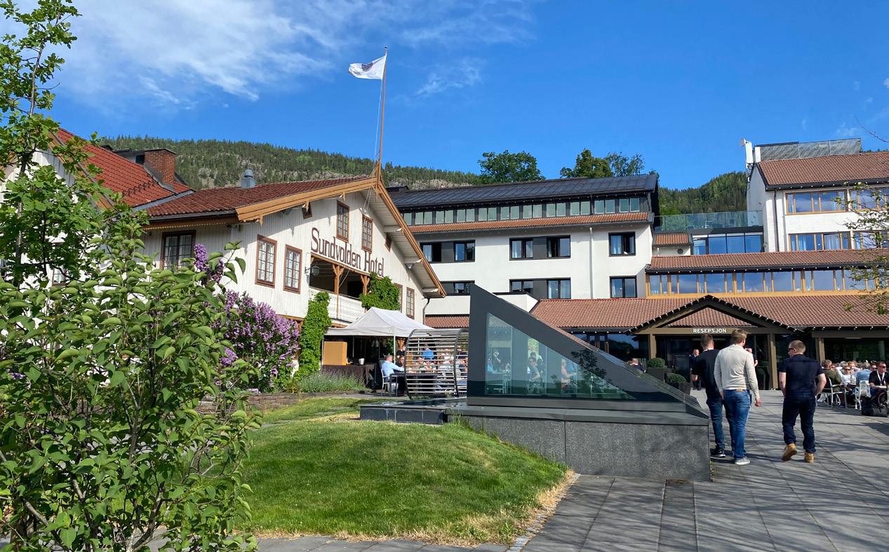 Konferansehotellet Sundvolden Hotel hører til De Historiske, er et komplett hotell med fint uteområde. Messe-onsdagen var solrik!