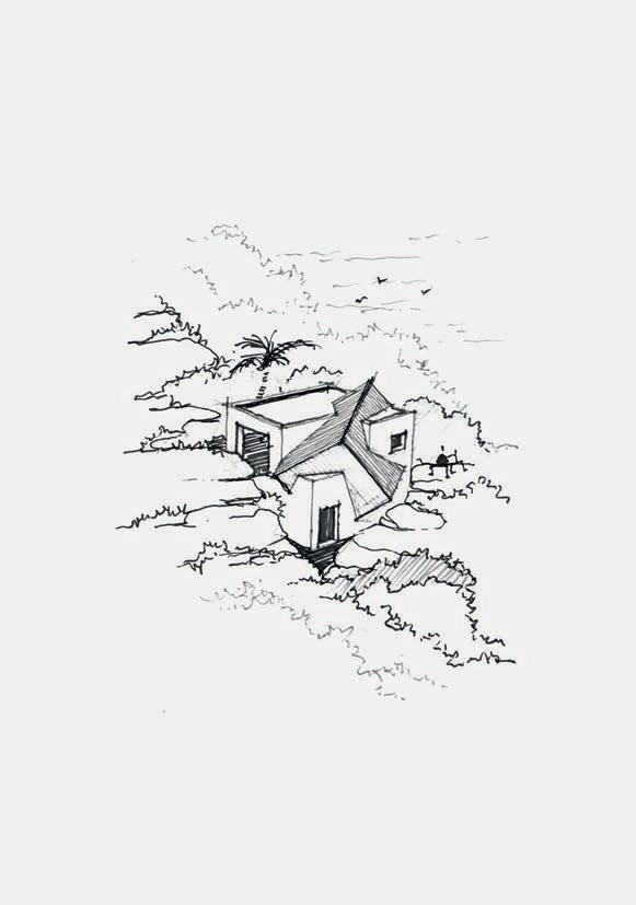 Pour François Pécard, l’élément fondamental souvent négligé dans les constructions récentes à St Barth et ailleurs, c’est le lien avec la nature, concept qu’il résume par l’expression suivante: un retour aux sources. Pour ce faire, le propos de l’architecte est d’envisager la structure dans toute sa dimension physique, c’est-àdire non seulement tenir compte des réalités topographiques mais aussi des matériaux utilisés, du positionnement de l’habitation par rapport aux éléments naturels et le soin apporté afin que l’ouvrage s’intègre bien dans son environnement.