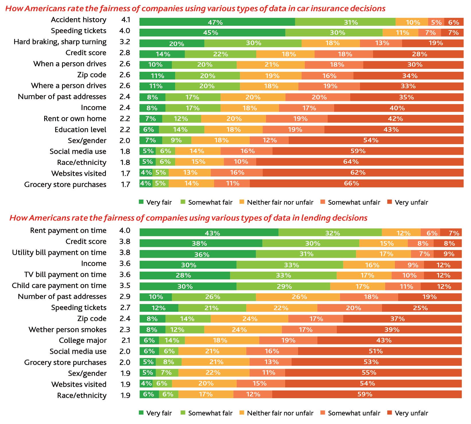ψοκίνδυνο προφίλ (δηλαδή εκείνοι που αντιμετωπίζουν μεγαλύτερες πιθανότητες απώλειας) αντιμετωπίζουν το κίνδυνο να μην έχουν πρόσβαση σε οικονομικά προσιτή ασφάλιση. Η πληθώρα των δεδομένων μπορεί επίσης να οδηγήσει σε μεγαλύτερη διαφοροποίηση βάσει παραγόντων που φαινομενικά είναι άσχετοι με την ασφάλιση (π.χ. βαθμοί πιστοληπτικής ικανότητας), κάτι που συχνά εκλαμβάνεται ως άδικο. Δεδομένης της απότομης μείωσης του μεγέθους των ομάδων κινδύνου που χρησιμοποιούνται για τον καθορισμό των ασφαλίστρων, η εξατομίκευση μπορεί τελικά να μεταφραστεί σε μεγαλύτερη αστάθεια τιμών για τους πελάτες, μειώνοντας ενδεχομένως την ελκυστικότητα της ασφάλισης. Επιπλέον, η μείωση μιας ομάδας κινδύνου αμφισβητεί τη βασική αρχή της ασφάλισης, η οποία βασίζεται στη συγκέντρωση κινδύνων και ασφαλίστρων.
