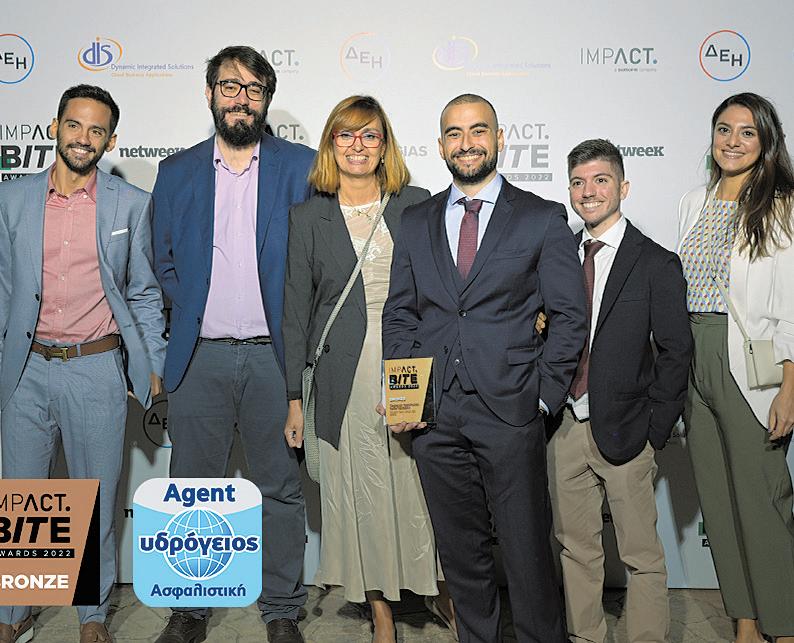 NEXTDEAL #504 13 ΟΚΤΩΒΡΙΟΥ 2022 Ρεπορτάζ |18 Α κόμη μία σημαντική διάκριση πέτυχε η Υδρόγειος Ασφαλι στική για τη mobile εφαρμογή Ydrogios Agent App, που απευθύνε ται στους ασφαλιστικούς διαμεσο λαβητές της. Όπως τονίζεται, με Bronze Award στην κατηγορία mobile των Impact BITE Awards 2022, το Ydrogios Agent App κατα κτά κορυφαία θέση ανάμεσα στις καλύτερες εφαρμογές