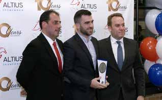 ΑΣΦΑΛΙΣΤΙΚΟ 161 | ΑΠΡΙΛΙΟΣ 2024 | ΕΤΆΙΡΕΙΕΣ βέβαια μια εμπειρία δέκα χρόνων, μαζί με τον εκπρόσωπο της οικογένειας, τον Γιάννη Λουλουδάκη, και τον φίλο μου και συνεταίρό μας, τον γενικό διευθυντή, καταφέραμε να σταθούμε σε μια δύσκολη εποχή και λόγω κρίσης», τόνισε ο CEO της Altius Βασίλης Μπόκας. «Δέκα χρόνια μεγάλης προσπάθειας με πολύ ωραίες στιγμές, έντονες στιγμές, έντονες προκλήσεις. Γιατί ήταν τα δέκα χρόνια που ήταν η βαθιά κρίση στη χώρα. Παρ’ όλα αυτά, με πολύ μεγάλη προσπάθεια και αφοσίωση και αγάπη σε αυτό που κάνουμε, καταφέραμε και φτάσαμε στα επίπεδα που θέλαμε τα παραγωγικά για να μπορούμε να κοιτάμε το μέλλον με αισιοδοξία και με σταθερότητα», συμπλήρωσε ο Γιάννης Λουλουδάκης. «Με διακατέχει μεγάλη συγκίνηση αλλά και περηφάνια γιατί στην κυριολεξία γεννηθήκαμε από τη στάχτη μας», ανέφερε στην κάμερα του nextdeal.gr ο Κωσταντίνος Λουλουδάκης. Στην κάμερα του nextdeal.gr μίλησαν ακόμη για την Altius οι Magnus Χατζηδημητρίου, Independent Distribution Channel Manager NN Hellas, o Νίκος Χουλιάρας, διευθυντής Πωλήσεων Eurolife FFH, η Ευαγγελία Κανελλοπούλου, Account Manager Generali, ο Δημήτρης Καραμπέκιος (Εμπορική Διεύθυνση AIG), ο Βασίλειος Στουπής, διευθυντής Πωλήσεων Allianz, και ο Γιάννης Χατζηθεοδοσίου, πρόεδρος Επαγγελματικού Επιμελητηρίου Αθηνών.