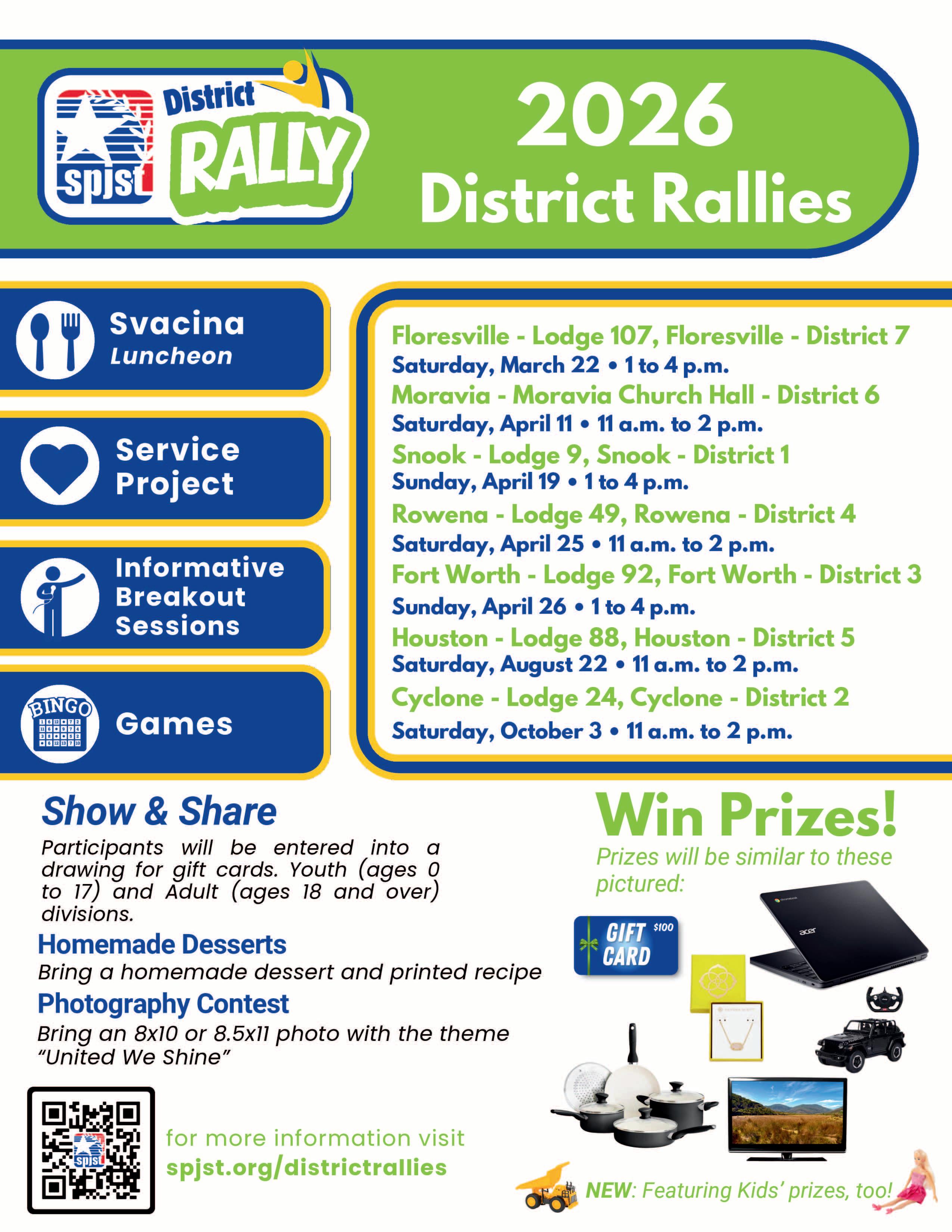 If you’ve been involved for decades, thank you for the foundation you’ve built. If you’re newer to SPJST, I hope you’re finding your place and your people. And if you’ve been a bit distant lately, know that there is always room for you to step back in.