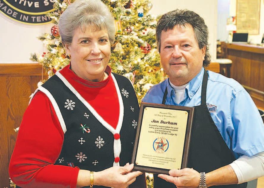 Vice President of Sales and Marketing Doherty recognized Doni Powell for her 25-year service anniversary and dedicated work at SPJST.