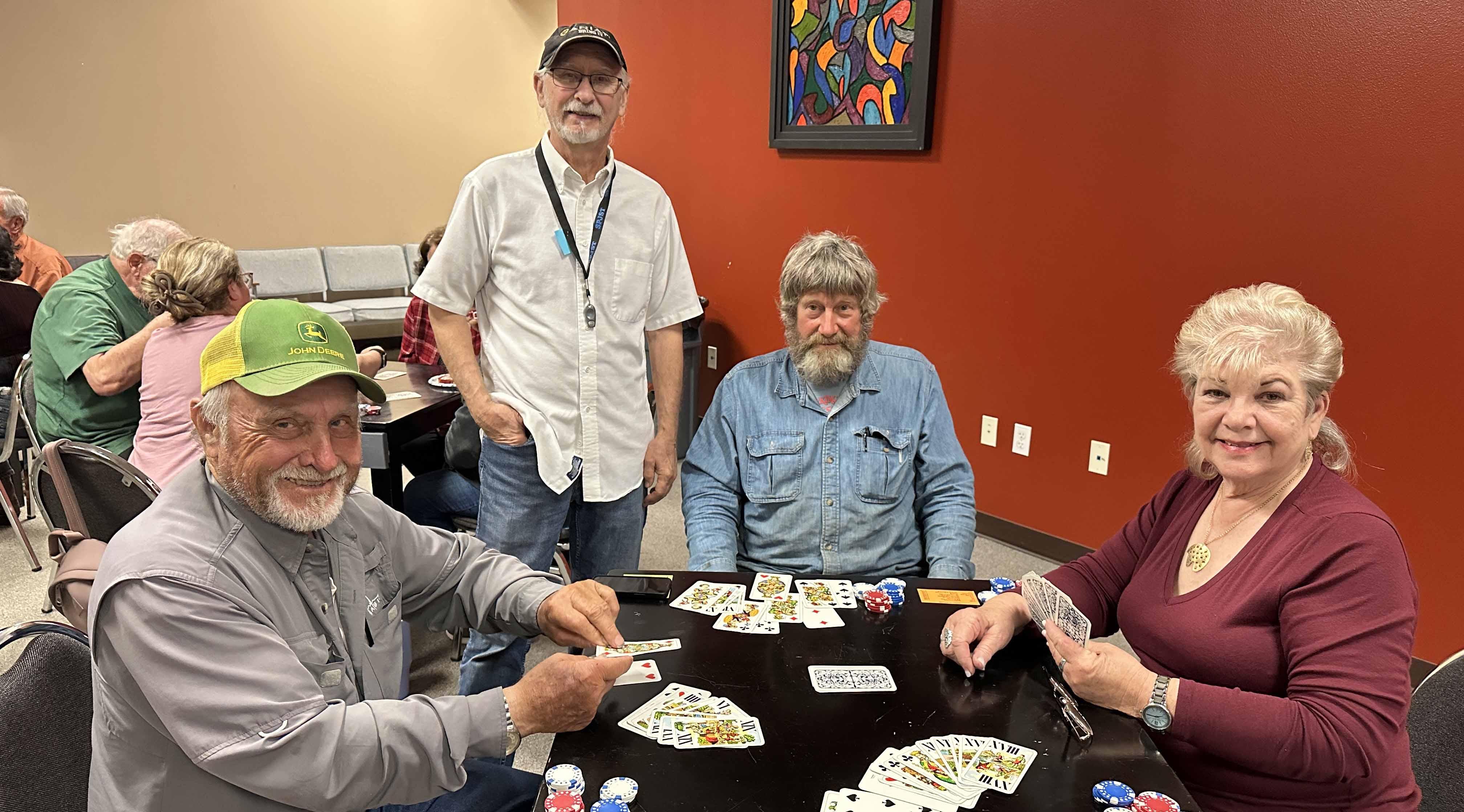 The Czech Heritage Museum has hosted tarok nights on the first and third Tuesdays of each month at 6:30 p.m. for many years. The nights will now be held at the SPJST Home Office. All are invited to learn the game or join in the fun. Pictured, from left, are Jimmie Coufal, Kenny Lange, Dan Kacir, and Carolyn Coufal.
