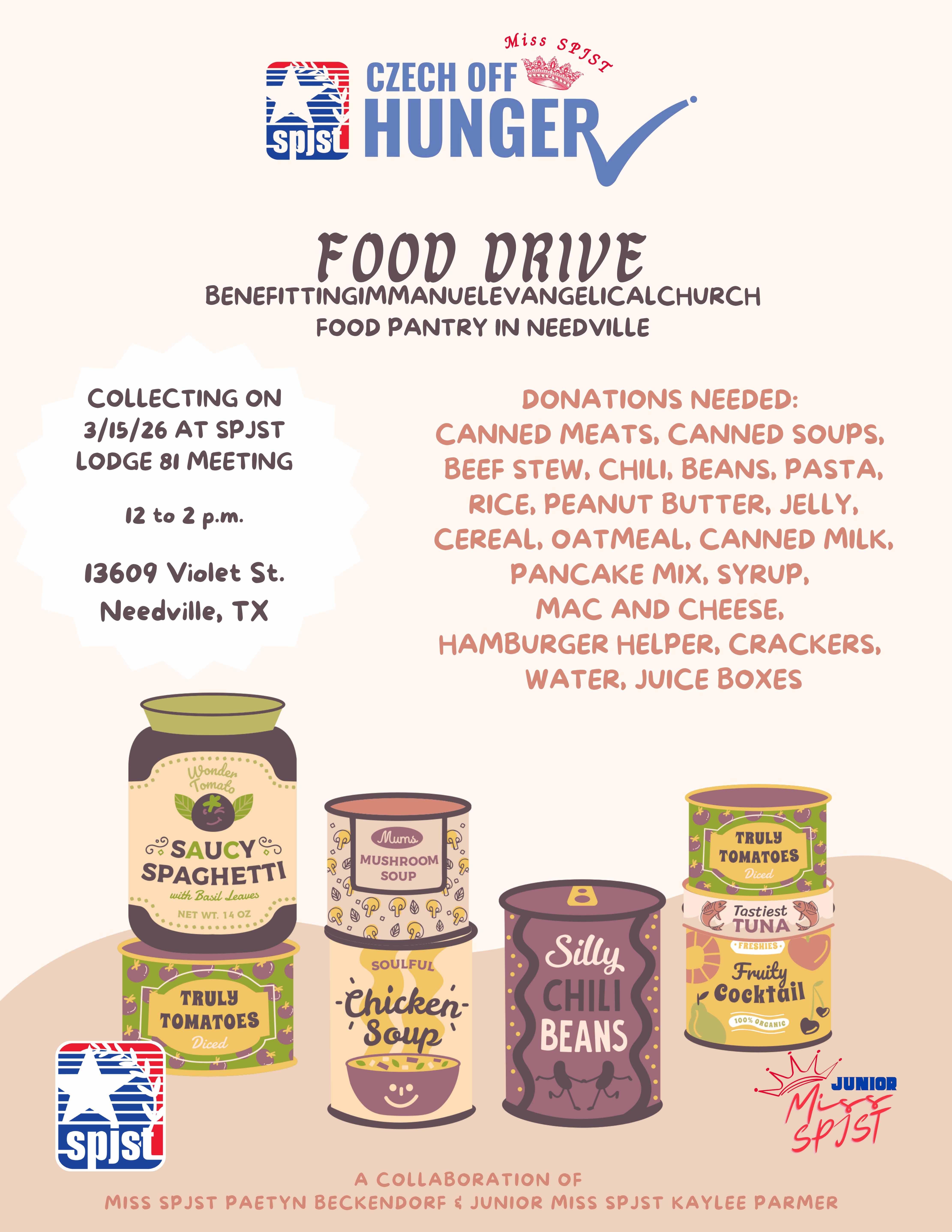 Lodge Hall: 13609 Violet Street, Needville 77461. Hall Manager/Bookings/Rentals: Marion Morales 281-650-4466. Lodge Meetings: Third Sunday of each month at the hall at 1 p.m.; meal at 12 noon. For information, call Vincent Newman 281-633-1882. Youth Club Meetings: Third Sunday of each month at 1 p.m. at the hall. For information, contact Youth Leader Kristen Jones 936-556-3248 / joneskb06@hotmail.com.