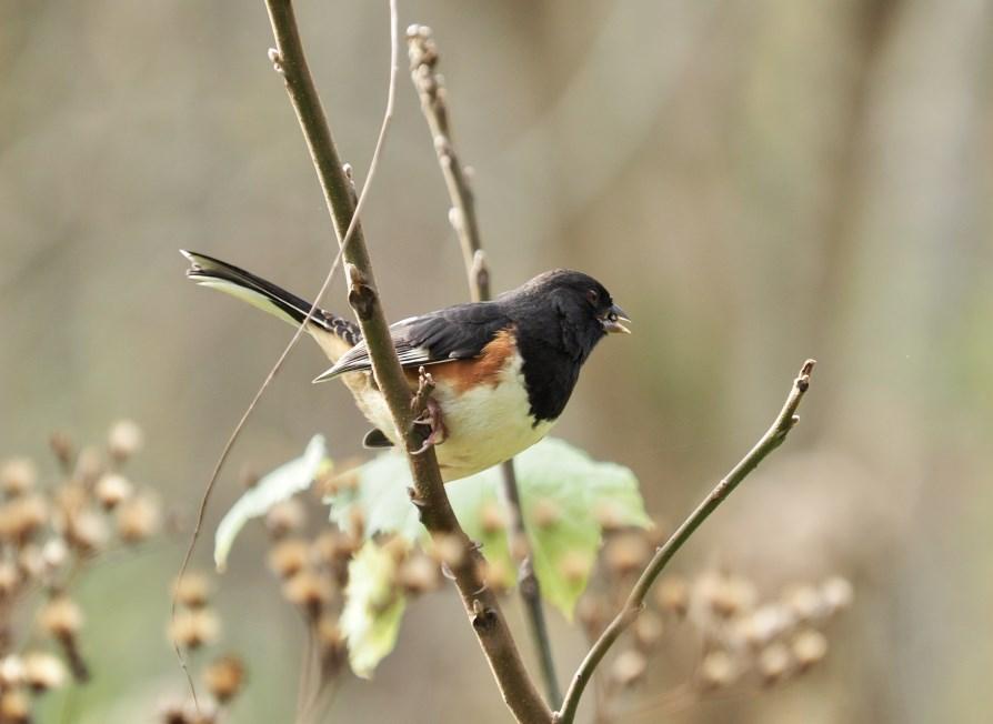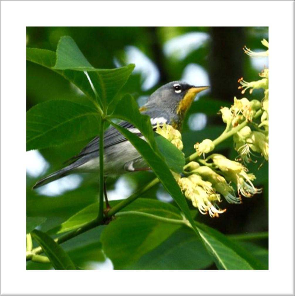Man varietes of warblers migrate north through Indiana in spring to their breeding ground in northern United States and southern Canada Pilar captured a couple of these migrator warblers in her camera the Connectcut warbler and the Chestnut-sided warbler The Yellow-rumped warbler and the Golden -crowned kinglet reside here in Indiana during winter and the migrate north during summer to breed