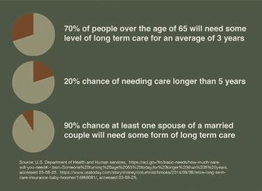 According to the government, a 65-year-old has a 70 percent chance of needing some level of LTC in their lifetime. Additionally, there is a 90 percent chance that at least one spouse of a couple will require LTC. These are pretty high odds. The average woman will need care for just under four years and the average man will need care for a little over two years. According to Genworth’s annual cost of care study, the median costs today in Wichita are over $6,000 per month for assisted living and over $9,000 per month for nursing care. But, it gets worse — these costs are today’s costs. If you are 65 years old today, it might be 20 years before you actually need the care. These costs are expected to increase over the next 20 years to over $11,000/month for assisted living and over $17,000/month for nursing care. If you don’t have a plan in place for how you will pay for these potential expenses, your family’s finances could be devastated. The surviving spouse may not even be able to maintain their own lifestyle after paying for the long-term care costs of their spouse.