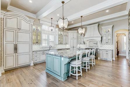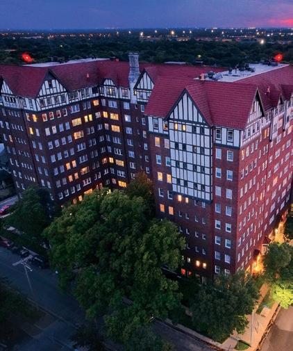appearance with miles and miles of leafy tree canopy. You can even see McConnell Air Force Base from this lofty perch. Our hostess was Eileen Kludt, who has become the Hillcrest’s unofficial historian, gathering huge binders of articles, accounting sheets and other memorabilia in the few years since she started researching the grand old building. She was gracious in sharing her residence with us for the photo shoot, which feels much more like a home than an apartment in both size and layout.