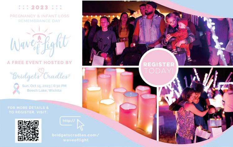 A huge part of Bridget’s Cradles’ support system centers around October — Pregnancy and Infant Loss Awareness month — and the Pregnancy and Infant Loss Remembrance Day that Ronald Reagan instituted on October 15, 1988. “Then someone created the idea of Wave of Light: that on this day, if every grieving family lights a candle at 7 o’clock at night, there will be a continuous wave of light across the Earth in different time zones,” Opliger said. “So we decided that we wanted to organize a community event in Wichita so that families can light their candles and honor their babies together.”