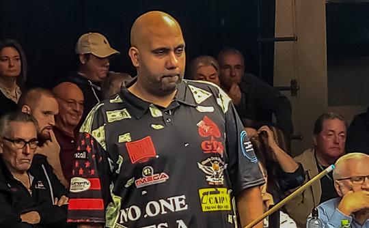 Billy Thorpe started the day off going into the lion’s den facing the always dangerous David Alcaide. Alcaide, knowing that you cannot give Billy a foothold, took control of the match and refused to let Billy get loose. David won the match 9-5 and Billy will join the players on the B side, where he will play Chetan Chhabra.