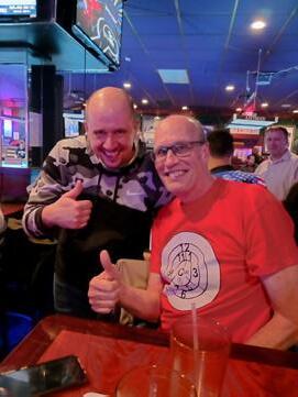 The great Thomas Van Eck, the inventor of the iCue training cue ball, and the YouTube sensation Shalae Brewster were hanging out at Griff’s. Thomas gave Points a few tries & scored a 95 on his third attempt! He beat my personal best score after just three tries! I can only imagine his score after a month of playing Points.
