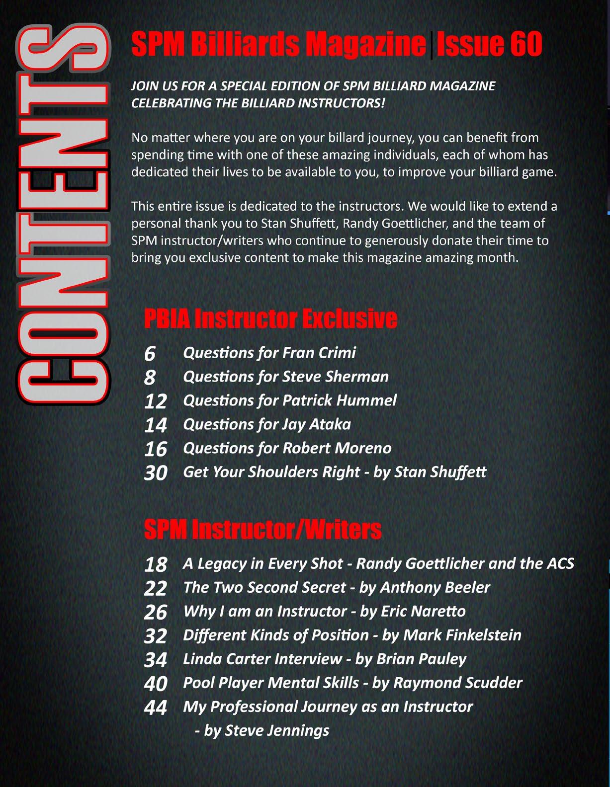 If you are interested in any of the PBIA directions listed in all five of the highlighted instructors, go to www.playbetterbilliards.com and select your state to find an instructor. If no instructor is available in your area, send me an email, and I will introduce you to those who offer online courses or intensive classes in person.