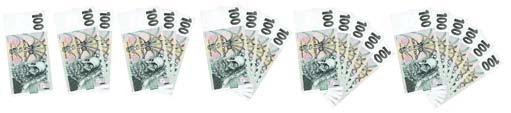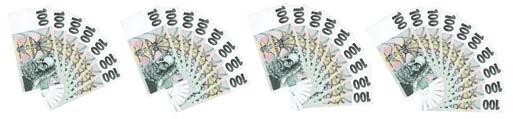 Pozoruj obrázky. Říkej a ukazuj si, kolik je v jednotlivých vějířích celkem korun: