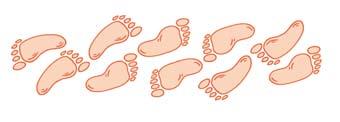 Zapiš pomocí násobení, kolik prstů mají celkem otisky chodidel.
