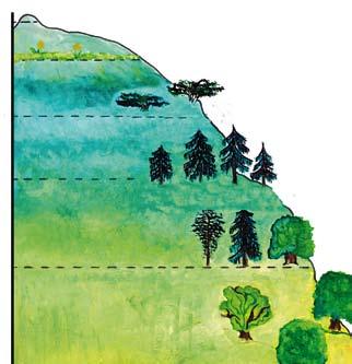 Jehli naté lesy se vyskytují v chladných oblastech mírného pásu, kde tvo í tajgu. V našich zem pisných ší kách se jehli naté lesy p irozen vyskytují v horských oblastech (tam p evažuje smrk ztepilý) a na pís itých (chudých) p dách v nížinách i pahorkatin (tam p evažuje borovice lesní). Krom jehli natých les jsou u nás i lesy smíšené a listnaté. Na obrázku 70 jsou znázorn ny vegeta ní stupn ,z nichž je z ejmé, která spole enstva rostou v ur itých nadmoských výškách, pokud do nich nezasahuje lov k. nich