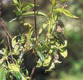 Obrázek 89 znázor uje rostliny poškozené n kterými dalšími v eckovýtrusnými houbami, jako jsou kade avka broskvo ová nebo hlízenka ovocná