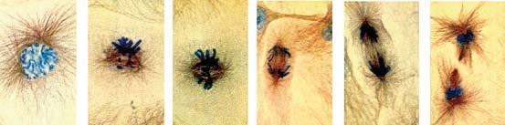 Zdvojení chromozom na za átku d lení ukazuje obrázek 83. Nejprve se každý chromozom podéln rozšt pí na dv ásti. Ty se odd lí a rozmístí ve st ední rovin . Pak se rozestoupí. Nakonec vznikají dv nová jádra a tím i dv bu ky se stejným po tem chromozom , jako m la bu ka p vodní.