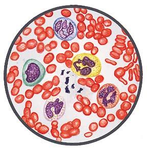 Krev má dv složky, krevní plazmu a krevní t líska, k nimž pat í ervené a bílé krvinky a krevní desti ky (obr. 37). Krev vytvá í vhodné životní podmínky všech orgán a bun k.