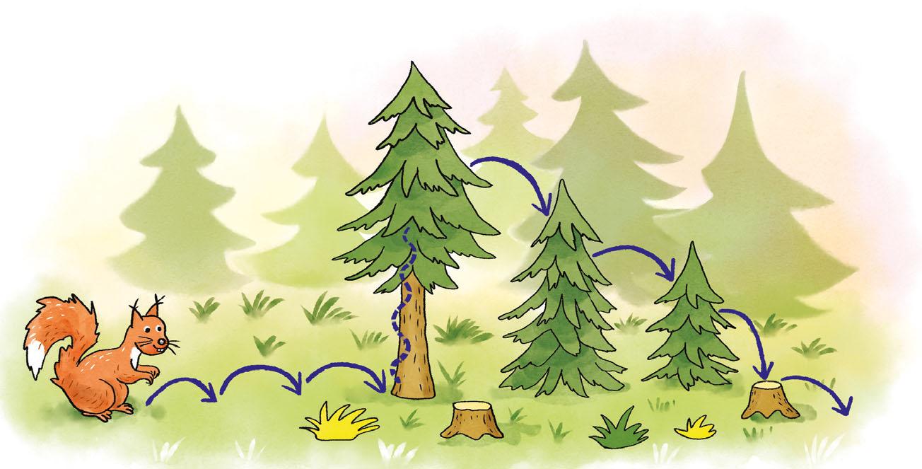 1 PŘEČTI z obrázku, co dělala veverka v lese. Kolik skoků veverka udělala? Veverka udělala skoků.