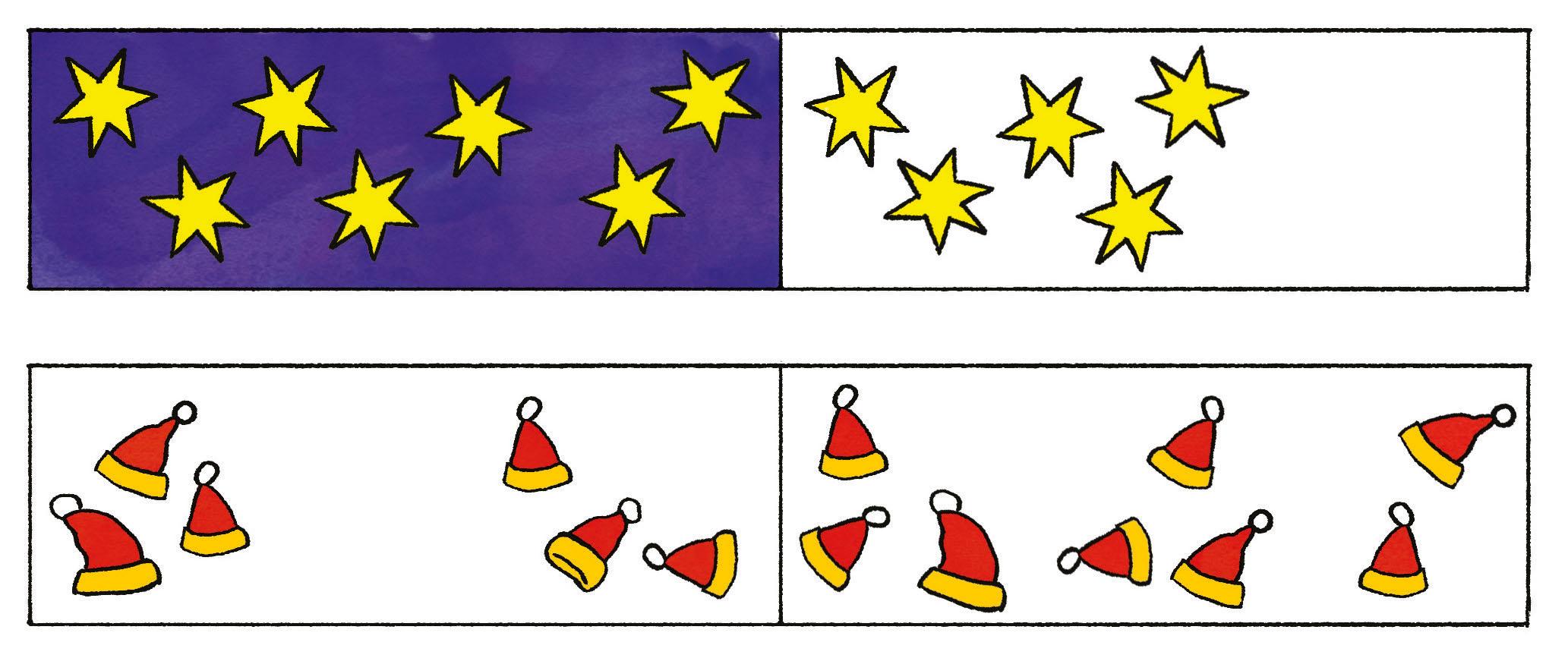 Skřítek z věže oznamuje, kolik je hodin. VYJÁDŘI to pomocí velkých a malých hvězdiček.