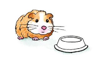 Doma máš kočku, psa a morče a pro ně tři misky: zelenou , modrou a hnědou . Každý mazlíček má misku jiné barvy. Kočka nemá zelenou. Pes má modrou. VYBARVI správnými pastelkami misky před zvířátky.