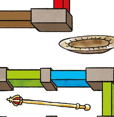 VEZMI SI žlutý klíč a PROVEĎ skřítka žlutým prohlídkovým okruhem. Příště ho proveď okruhem jiné barvy (zeleným , červeným , ...). Pozor na pravidla pod obrázkem. Ukaž na obrázku hodovní síň.
