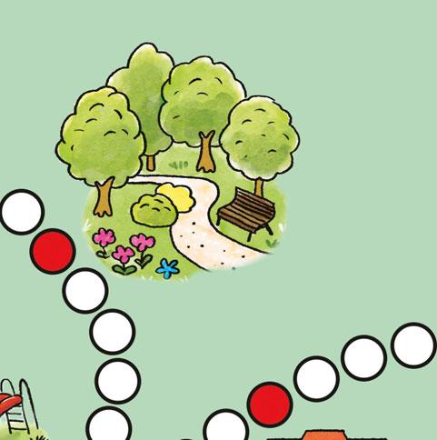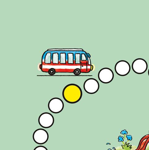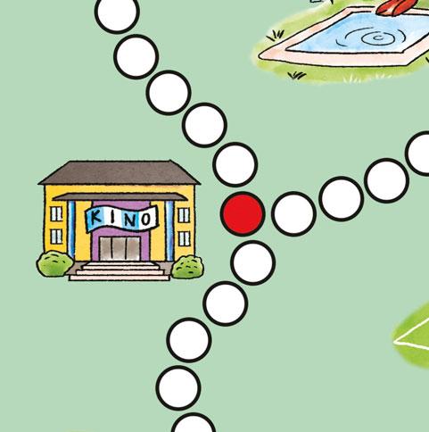 2. Hoď kostkou, vyber směr a podle počtu puntíků posuň figurku. Pokud jsi došel/došla na zastávku, pojmenuj ji podle obrázku a řekni, co zde můžeš dělat. Dalším hodem pokračuj ve hře. Na křižovatce znovu vyber směr.
