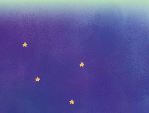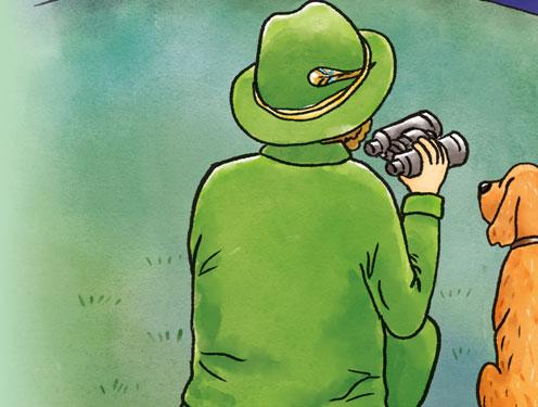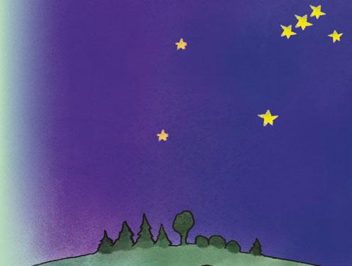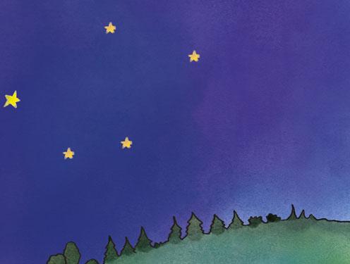 Úkol k obrázku na přední straně obálky: Spočítej, kolik hvězd celkem vidí hajný na obloze. Sleduje souhvězdí Orion. Najdeš ho?