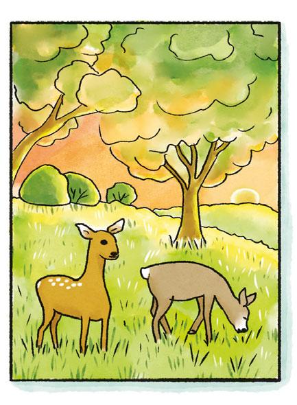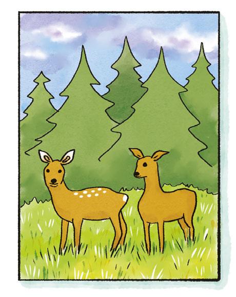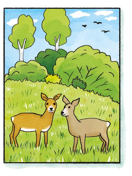 Hajný s pomocníkem pozorovali srnky. Udělali fotografie. Kolik srnek viděli (ty, co jsou stejné, počítej jen jednou)? Pozorovali srnky.