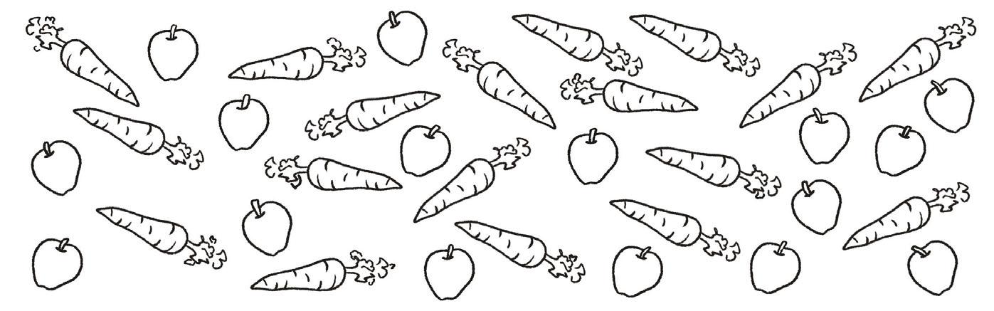 Pokud ano, vybarvi správný počet mrkví a jablek, který nesl hajný.