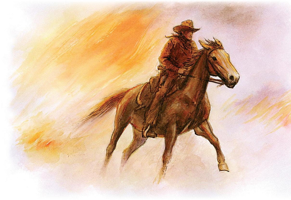Strach z uhoření, který mě dosud ochromoval, najednou pominul. V hlavě se mi vyjasnilo. Ani teď jsem neměl velkou naději, jen zoufalé odhodlání nevzdat se. Hnědák uháněl, aby zachránil život sobě i mně. Byla to jízda s ohněm o závod.