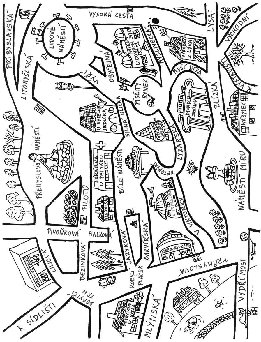 Dnes je ve třídě rušno. Škola pořádá závod starým městem. „Děti,“ začíná paní učitelka, „vezměte si s sebou pití, svačinu, blok, tužku, pastelky, kapesník a legitimaci na tramvaj. Protože je nás dnes jen patnáct, vytvoříme tři družstva. V družstvu červených bude Valery, Marek, Soňa, Pavlína a Bořek. V družstvu modrých bude Thomas, Žaneta, Juraj, Karolína a Marie. A v družstvu zelených bude Jakub, Patrik, David, Zuzana a Eliška. Aby všichni mohli najít nejkratší cestu k cíli, nakreslila jsem vám plánek.“