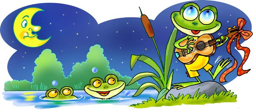 2. Seběhly se všechny malé žáby, poslouchají písničku, žabka Katka stále jenom hraje v rákosí při měsíčku.