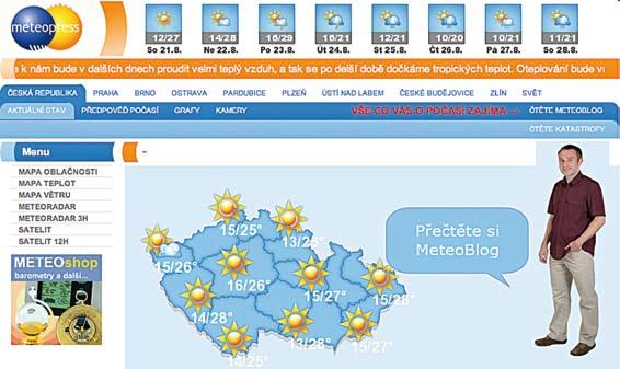 Meteorologové sledují, jakým sm rem se proudící vzduch pohybuje a jaké jsou jeho další vlastnosti – jakou má teplotu, zda je nasycen vodními parami, nebo zda je suchý, v jaké výšce nad povrchem Zem se pohybuje. Z t chto poznatk mohou p edpovídat vývoj po así pro danou oblast na n kolik dní dop edu, tj. vytvo it krátkodobou p edpov po así. Pomocí po íta mohou dokonce modelovat vývoj po así i na delší dobu, nap . až na jeden m síc. Takovou p edpov nazýváme dlouhodobá p edpov po así. Bez poíta a satelitních družic se meteorologové neobejdou p i žádné p edpov di. Krátkodobé i dlouhodobé p edpov di po así m žeme najít na internetu. Menu v levé ásti obrázku 66 ukazuje, co všechno m žeme na uvedeném portálu sledovat.